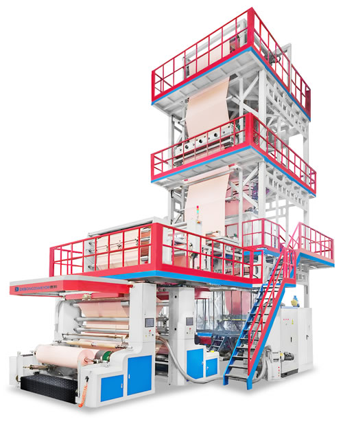 DB-65x2、75x1/1800、75x2、90x1/2300三層共擠上旋 IBC 吹膜復合機組